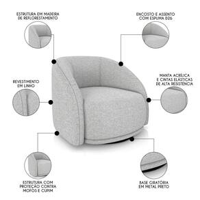 Bem-estar e elegância descrevem bem a Poltrona Decorativa Orgânica Giratória Lya M22 Linho Cinza Claro, da Mpozenato, o que a torna ideal para compor a decoração de diversos ambientes, desde a sala de estar, living, quarto, escritório e por aí vai.