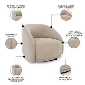 Bem-estar e elegância descrevem bem a Poltrona Decorativa Orgânica Giratória Lya M22 Suede Bege, da Mpozenato, o que a torna ideal para compor a decoração de diversos ambientes, desde a sala de estar, living, quarto, escritório e por aí vai.