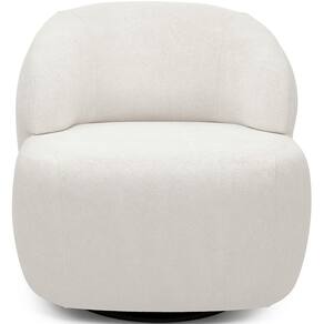 Características: Estrutura em madeira de eucalipto tratada e aparelhada com reforços, cantoneiras e chapas em MDF. Revestimento em Bouclê de alta qualidade na cor Branco. Encosto curvo fixo composto por espuma soft. Assento curvo fixo composto por espuma D-26 e molas espirais. Percintas elásticas no assento para maior resistência e durabilidade. Braços compostos por espuma D-20. Pés em aço giratório. Peso suportado: Até 120 kg.