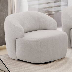 Características: Estrutura em madeira de eucalipto tratada e aparelhada com reforços, cantoneiras e chapas em MDF. Revestimento em Bouclê de alta qualidade na cor Cinza. Encosto curvo fixo composto por espuma soft. Assento curvo fixo composto por espuma D-26 e molas espirais. Percintas elásticas no assento para maior resistência e durabilidade. Braços compostos por espuma D-20. Pés em aço giratório. Peso suportado: Até 120 kg.