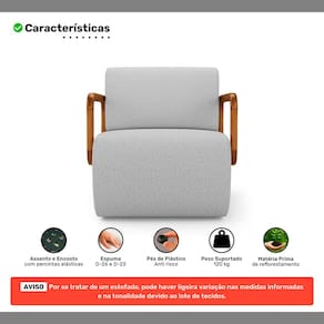 A Poltrona Decorativa Orgânica Living Kavya une design contemporâneo, conforto e resistência, ideal para compor espaços com elegância e funcionalidade. Sua estrutura em madeira de eucalipto, reforçada com cantoneiras e chapas em MDF, garante alta durabilidade e proteção contra infestações de cupins.