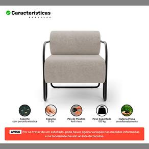 Seu encosto possui almofada solta 100% em fibra siliconada, oferecendo maciez e aconchego. O assento fixo, confeccionado com espuma D-26, manta acrílica e percintas elásticas, garante suporte e conforto prolongado. O revestimento em bouclê confere textura agradável e aparência sofisticada, ideal para compor diferentes estilos de decoração.