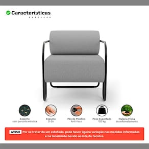 Seu encosto possui almofada solta 100% em fibra siliconada, oferecendo maciez e aconchego. O assento fixo, confeccionado com espuma D-26, manta acrílica e percintas elásticas, garante suporte e conforto prolongado. O revestimento em Linho confere textura agradável e aparência sofisticada, ideal para compor diferentes estilos de decoração.