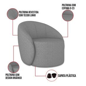 Poltrona Decorativa Orgânica Lua Linho D03 - D`Rossi - Grafite
