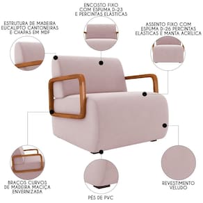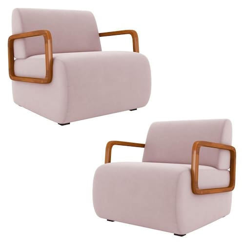 Deixe-se envolver pelo conforto e estilo da Poltrona Decorativa Orgânica para Sala Kit 2 Belarus Z08 Veludo Rosê, da Mpozenato.
