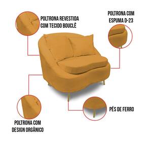 A Poltrona Zaya é uma peça que combina segurança, conforto e durabilidade. Ela tem um design orgânico que remete às formas encontradas na natureza como ondas, folhas ou conchas que além de se moldar ao corpo humano, evoca uma sensação de calma e equilíbrio criando um espaço acolhedor e relaxante. Além da sua simetria artística e curvas suaves, ela contém os Pés de Ferro Dourado e um revestimento em tecido Bouclê Mostarda, que cria uma conexão entre a peça e o ambiente. Ela é ideal para quem busca móveis que não só sejam bonitos, mas que também proporcionem conforto e bem-estar. Pode ser utilizada em sala de estar, salas de espera, recepções, bibliotecas, salas de leitura, espaços externos cobertos, espaços de design e galerias, escritórios, lojas e espaços comerciais, ou qualquer outro espaço que você queira decorar com estilo e bom gosto. Ela tem uma estrutura em madeira de reflorestamento eucalipto, que garante a resistência e a sustentabilidade do produto. Ela suporta até 120 kg de peso, podendo ser utilizada por pessoas de diferentes biotipos. Ela tem um acabamento reforçado e espuma de qualidade D23, que oferece maciez e aconchego. O encosto conta com duas almofadas soltas, macias e generosas, permitindo que se ajustem ao corpo do usuário para oferecer um suporte personalizado. O assento também conta com uma almofada solta, oferecendo flexibilidade e facilidade de ajuste, além de garantir um toque macio e confortável. A Poltrona Zaya é um móvel de alta qualidade, que exala sofisticação e conforto. Ela é fácil de transportar, pois tem um peso leve e um tamanho compacto. A Poltrona Zaya é um produto que vai fazer a diferença na sua decoração e no seu bem-estar. Ela vai trazer charme, conforto incomparável e durabilidade para o seu ambiente. Aproveite essa oferta e leve para casa uma poltrona de qualidade por um preço incrível. Essa é a sua chance de ter uma poltrona deslumbrante por um preço imperdível. Corra e garanta seu Kit 2 Poltronas antes que acabe o estoque!