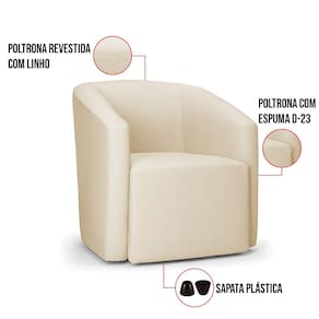 Poltrona Decorativa Orgânica Stella Max Linho Bege D03 - D`Rossi