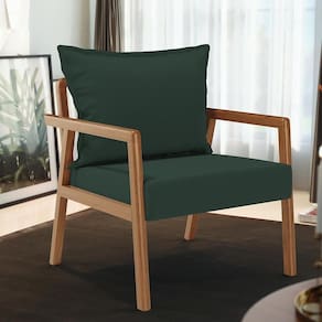 A Poltrona Decorativa Para Sala de Estar e Living Alícia B04 Suede Verde Musgo é a peça perfeita para adicionar um toque de estilo moderno a sua sala de estar. Com sua estrutura em madeira maciça envernizada, essa poltrona de madeira traz durabilidade e elegância para o ambiente. O assento estofado e revestido com materiais de qualidade oferece conforto excepcional, permitindo que você relaxe com estilo. Já o design moderno combina perfeitamente com qualquer tipo de decoração, tornando-a uma escolha versátil para qualquer sala de estar, living, recepção, escritório e diversos outros ambientes. A cereja do bolo fica por conta do detalhe da corda trançada no encosto com a almofada sobreposta, um charme à parte.