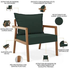 ProductWeight: 8 kg | Model: Alícia | MaterialFamily: Suede | OriginState: Paraná | ProductWarranty: 90 dias após o do produto | ColorSimple: Verde Musgo | Color: Verde Musgo | ColorFamily: Verde Musgo | Material: Madeira, Suede | ColorSupplier: Verde Musgo | OriginCountry: | ProductLength: 72 cm | SupplierSimpleName: Poltrona Decorativa Para Sala de Estar e Living Alícia B04 Suede Verde Musgo - Lyam Decor | SizeDescription: Altura: 88 cm x Largura: 66 cm x Profundidade: 72 cm | ProductWidth: 66 cm | ProductInstructions: Produto para uso em ambiente interno, nao devendo ficar exposto ao sol, calor e umidade excessivos. | ProductHeight: 88 cm | ProductContents: 01 Poltrona