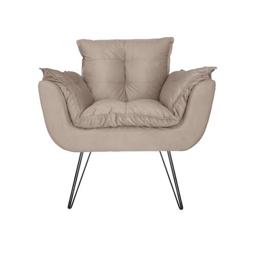 Poltrona Decorativa Para Recepção Com Pés de Ferro Opala Suede Bege - LM DECOR