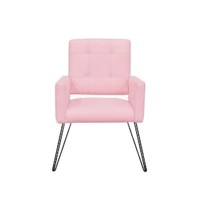 Poltrona Decorativa Para Recepção Pés de Ferro Camila Suede Rosa Bebe - LM DECOR