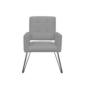 Poltrona Decorativa Para Sala de Espera Pés de Ferro Camila Suede Cinza - LM DECOR