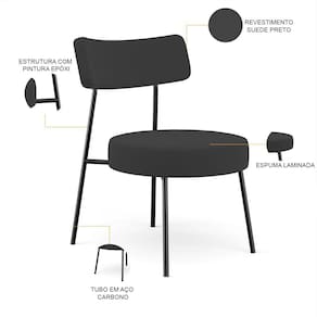 Amplamente moderna, dispondo de muito realce e design singular, a Poltrona Decorativa Para Sala De Estar Base Fixa Londres L02 Suede Preto - Lyam vem com a personalidade e elegância que sua decoração merece! Estruturada em aço carbono, contrasta lindamente com o encosto e assento revestidos em Suede, é confeccionada com materiais de excelente qualidade, extremamente resistentes e aconchegantes. Podendo ser disposta em sala de estar, espera e recepção, também em hall de entrada e até mesmo na área gourmet. Adquira já a sua!!