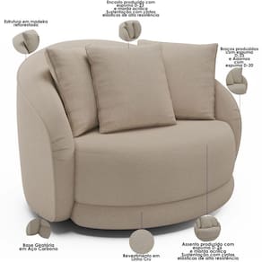 Indicado para uso residencial, sua limpeza deve ser feita com pano umedecido em água limpa, sem esfregar, não utilizar produtos abrasivos, desengordurantes, álcool ou solvente. Nunca sentar nos braços ou encosto do produto.