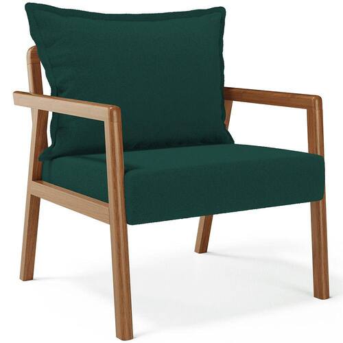 A Poltrona Decorativa Para Sala de Estar e Living Alícia B04 Bouclê Verde é a peça perfeita para adicionar um toque de estilo moderno a sua sala de estar. Com sua estrutura em madeira maciça envernizada, essa poltrona de madeira traz durabilidade e elegância para o ambiente. O assento estofado e revestido com materiais de qualidade oferece conforto excepcional, permitindo que você relaxe com estilo. Já o design moderno combina perfeitamente com qualquer tipo de decoração, tornando-a uma escolha versátil para qualquer sala de estar, living, recepção, escritório e diversos outros ambientes. A cereja do bolo fica por conta do detalhe da corda trançada no encosto com a almofada sobreposta, um charme à parte.