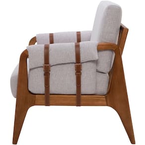 Combinando materiais e texturas, essa poltrona de madeira com revestimento em linho traz um design único expresso, principalmente na base de madeira, com encosto ripado e, ainda, com as cintas de couro de destacam as laterais dos braços. Para completar, o estofamento com espuma de alta densidade garante o aconchego que você procura, seja enquanto lê um livro, recebe a família e amigos ou simplesmente enquanto relaxa.