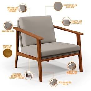 A praticidade e facilidade de compor qualquer ambiente a tornam ainda mais atraente, também merece destaque a estrutura em madeira, na cor nozes, o encosto estofado com a almofada solta que deixam tudo melhor e equilibrado em seu espaço.