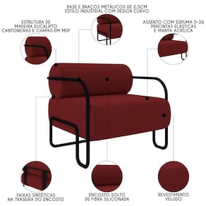 Para você que não abre mão do conforto aliado à beleza e sofisticação, a Poltrona Decorativa para Sala Industrial Kira K04 Veludo Vermelho, da Mpozenato, é a opção perfeita para compor a sua sala de estar.
