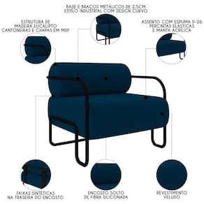 Para você que não abre mão do conforto aliado à beleza e sofisticação, a Poltrona Decorativa para Sala Industrial Kit 2 Kira K04 Veludo Azul, da Mpozenato, é a opção perfeita para compor a sua sala de estar.
