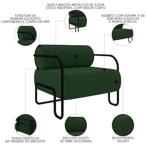 Com design moderno e inovador inspirado no estilo industrial, expresso pela base metálica com desenho curvo, esse kit com 02 poltronas decorativas vai complementar não somente a decoração da sala de estar ou living, como também poderá ser aproveitada em diversos ambientes como recepção, escritório, clínicas, dentre outros e, assim, oferecer o máximo de conforto a sua família ou clientes, enquanto cria uma sensação indescritível de bem-estar.