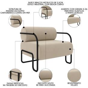 Com design moderno e inovador inspirado no estilo industrial, expresso pela base metálica com desenho curvo, esse kit com 02 poltronas decorativas vai complementar não somente a decoração da sala de estar ou living, como também poderá ser aproveitada em diversos ambientes como recepção, escritório, clínicas, dentre outros e, assim, oferecer o máximo de conforto a sua família ou clientes, enquanto cria uma sensação indescritível de bem-estar.