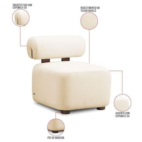 Madeira Eucalipto Reflorestada, Espuma D-24, Tecido Bouclê, Base de madeira maciçaVendido e entregue por WebContinental