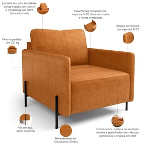 Seus pés metálicos em estilo industrial conferem não somente beleza, mas também um charme contemporâneo que se destaca em sala de estar, living, escritório ou até mesmo no seu cantinho de leitura. Confortável e versátil, a poltrona industrial Domani harmoniza com diversos estilos de decoração, sendo a escolha ideal para quem quer ousar sem abrir mão do conforto. Transforme seu lar em um verdadeiro espaço de estilo e aconchego com a Poltrona Decorativa Domani.