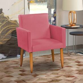 Poltrona Decorativa Para Sala Nina Suede Cores Pé Palito Castanho - Rosê, Suede