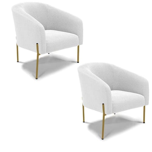 Poltrona Decorativa Pé Ferro Dourado Kit 2 Stella Bouclê D03 - D'rossi Cor Off White