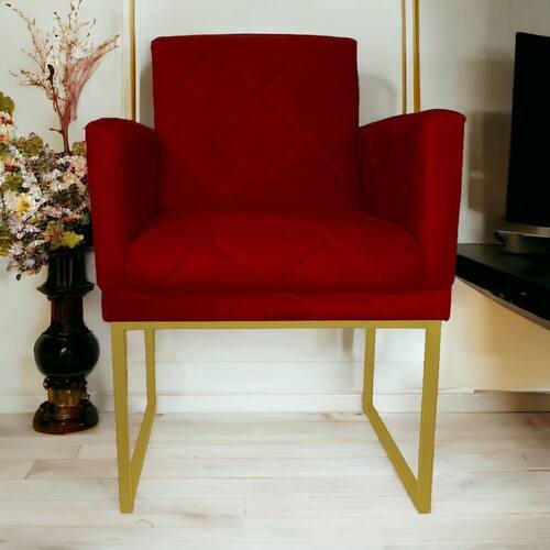 Poltrona Decorativa Pé Ferro Klara Suede Vermelho - Londrilar