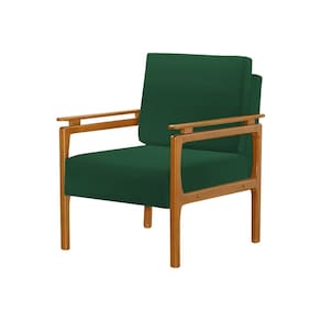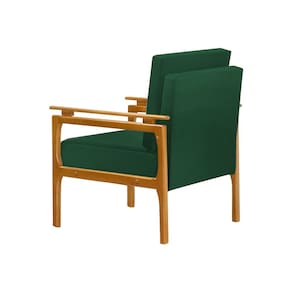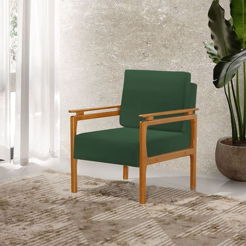 Poltrona Decorativa Pés de Madeira Maciça Yasmin Veludo Verde