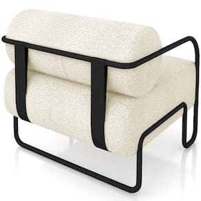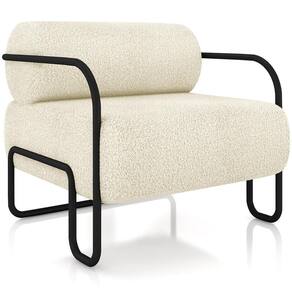 Poltrona Decorativa Pés Industrial Moscou K01 Bouclê Creme - Lyam Decor - Bege
