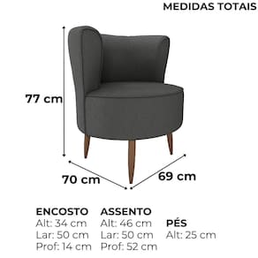 Poltrona Decorativa Pes Palito Savana Veludo Light Milani Store - Cinza