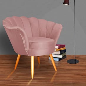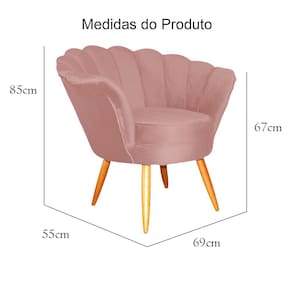 Poltrona Decorativa Pétala Veludo Rosa Pés Madeira Ms Decor