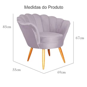 Poltrona Decorativa Pétala Veludo Rosê Pés Madeira Ms Decor