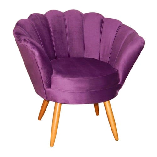 Poltrona Decorativa Pétala Veludo Roxo Pés Madeira Mz Decor