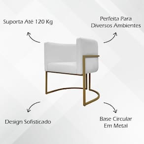 Não nos responsabilizamos por montagens, subidas de escadas, subidas de elevadores, ou qualquer situação no ato da . Em caso de dúvidas, estamos à disposição no ?CAMPO DE PERGUNTAS?.Poltrona Decorativa Recepção Luna Tecido Sintético Cores Base de Ferro Dourada