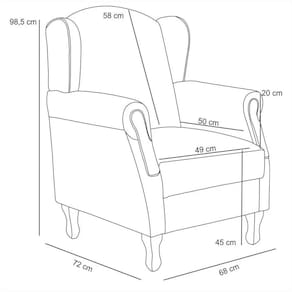 Altura: 99 cm Largura: 68 cm Profundidade: 72 cm Altura do chão ao Assento: 45 cmAltura do Encosto: 58 cm Peso: 20 kg Volume:01