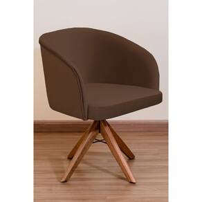 Poltrona Decorativa Redonda Pé Giratório de Madeira - Marrom