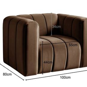 A tonalidade da cor do tecido pode variar de acordo com o lote do fabricante. Acompanha Almofadas extras: Não Acompanha Puff: Não Almofada do assento: Não Possui Almofada do encosto: Não Possui Altura do assento até o chão: 44 cm Altura do Encosto: 34 cm Ambiente Principal: Sala de Estar codigo_ean: 7900288123565 Cor: Marrom Cor do Produto: Marrom Design Assinado: Não Enchimento do Braço: Espuma D-26 Encosto para a Cabeça: Não Estampado: Não Extensível: Não Informações Complementares: 120Kg por acento Itens Inclusos: 1 Poltrona Linha ou Coleção: Chesterfield Marca: BELLA DECOR Material do Braço: Madeira Eucalipto Material dos Pés: Plástico Resistente Modelo de Poltrona: Fixo Necessita Montagem: Não Origem do Produto: Nacional Peso: 24 kg Possui Percintas Elásticas: Sim Possui Pés: 04 Possui Rodízio: Não Recomendações de Uso, Manutenção e Limpeza: Limpeza e cuidados: pode ser utilizado aspirador de pó, escova com cerdas macias ou limpeza a seco. Não utilizar produtos químicos, abrasivos ou limpeza a vapor. Evitar exposição prolongada ao sol. Suporta Até (kg): 120 kg Tecido Predominante: Veludo Tipo de Assento: Fixo Tipo de Encosto: Fixo Tipo de Poltrona: Decorativa