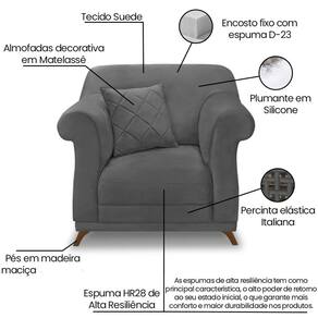 Modelo: Poltrona Decorativa Retrô Polo Com Almofada Suede Pés: Madeira Maciça Assento: Fixo com espuma D23 e plumante em silicone Encosto: Fico com percintas elásticas italiana, espuma HR28 e plumante em silicone Sistema de Montagem: Necessário fixar os pés