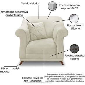 Poltrona Decorativa Retro Polo Com Almofada Veludo 2221 Ezz