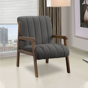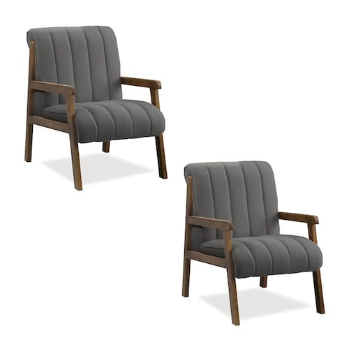 Poltrona Decorativa Sala Base de Madeira kit 2 Daline Bouclê Cinza Escuro E03 - D`Rossi