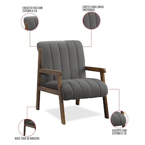 A Poltrona Daline é uma excelente escolha para quem busca uma peça com design robusto, elegante e confortável. Seu estilo inovador transforma qualquer ambiente em um visual único e marcante oferecendo um espaço acolhedor e relaxante. A poltrona possui base de madeira maciça e presenta um acabamento gomado no assento e no encosto com detalhes de cortes e linhas enceradas que além de garantir durabilidade e resistência realça todo o charme da peça. Possui braços com aberturas vazadas, oferecendo um design leve, combinado com o revestimento em tecido Bouclê Cinza Escuro, que cria uma conexão entre a peça e o ambiente. Pode ser utilizada em sala de estar, recepções, escritórios, lojas e espaços comerciais, ou qualquer outro espaço que você queira decorar com estilo e bom gosto. Ela tem uma estrutura em madeira de reflorestamento eucalipto, que garante a resistência e a sustentabilidade do produto. Ela suporta até 120 kg de peso, podendo ser utilizada por pessoas de diferentes biotipos. Ela tem um acabamento reforçado e espuma de qualidade D24, que oferece maciez e aconchego. Ela é fácil de transportar, pois tem um peso leve e um tamanho compacto. A Poltrona Daline é um produto que vai fazer a diferença na sua decoração e no seu bem-estar. Garanta já seu kit 2 Poltronas!