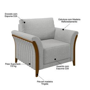 A combinação do desenho slim com os detalhes dos braços curvos e os pés em madeira resulta em uma poltrona para sala atemporal, que combina tanto com a decoração clássica quanto contemporânea. Mas, além dos atributos estéticos, a Poltrona Roya também é a tradução de conforto e bem-estar, sem contar a versatilidade, já que pode ser disposta em vários ambientes, desde a sala de estar, ao quarto, recepção ou escritório.