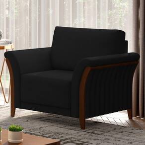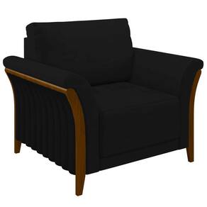 Poltrona Decorativa Sala de Estar 102cm Pés Madeira Roya M22 Veludo Preto - Mpozenato