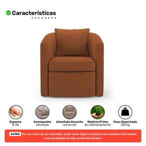 Seu assento é preenchido com espuma D-24, que garante maciez sem perder a firmeza, proporcionando momentos de relaxamento em qualquer ambiente. O revestimento em Bouclê traz um toque sofisticado, com textura agradável e de fácil manutenção.