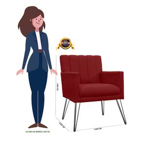 Poltrona Decorativa Sala de Estar com Pés de Ferro Cecília Suede Vermelho Bordo - LM DECOR