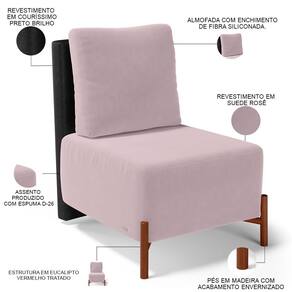 Poltrona Decorativa Sala de Estar Living Pés Madeira Hungria L02 Couríssimo Preto Suede Rosê - Lyam