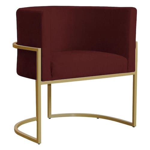 Poltrona Decorativa Sala de Estar Luana Base Gold Suede Bordô - Montanaris Decor
